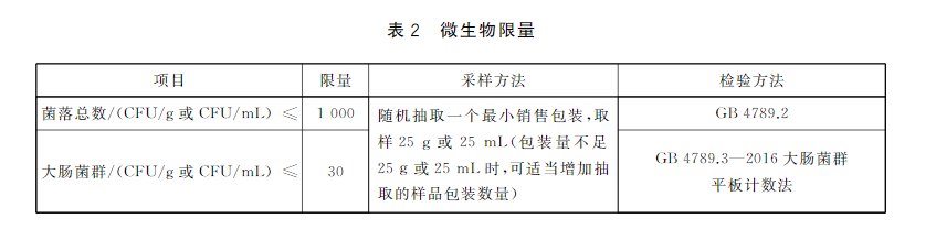 微生物限量应符合表2的规定