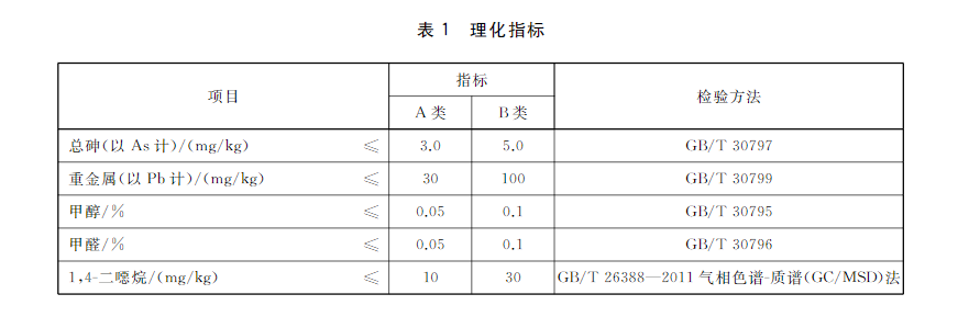 4.2.1 理化指标理化指标应符合表1的规定。